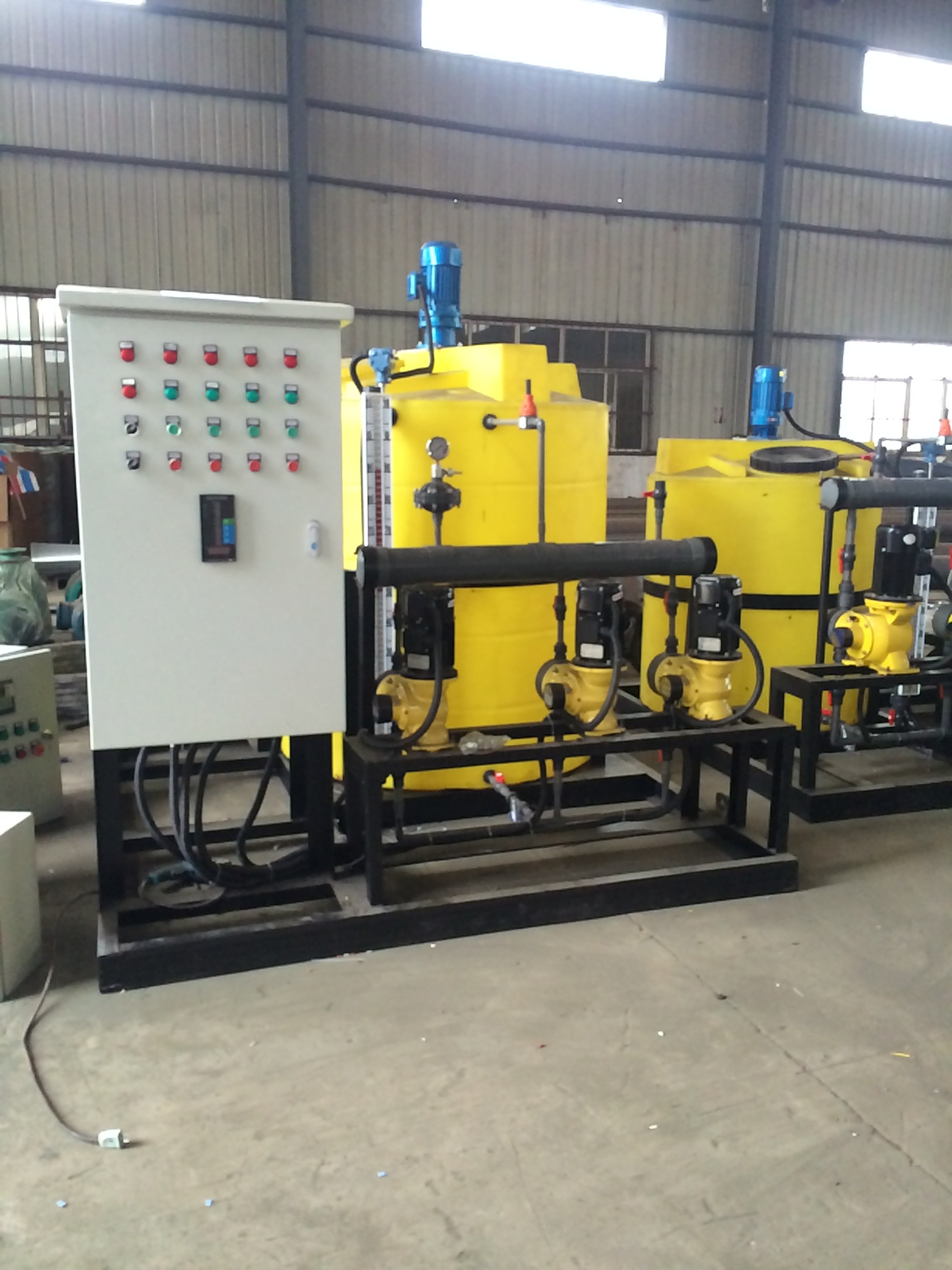 制造廠完成設(shè)備購(gòu)置、制造、組裝、調(diào)試、試運(yùn)行,用戶(hù)只需將智能型全自動(dòng)加藥裝置安放在加藥間后,將計(jì)量泵出口與加藥管路、計(jì)量箱進(jìn)出口與進(jìn)水管等連接好,并將控制柜電源和檢測(cè)儀表信號(hào)送到控制柜就可以啟動(dòng)、投入運(yùn)行。這樣可以大大減少現(xiàn)場(chǎng)施工工作量,避免了中間環(huán)節(jié)繁多引出的差錯(cuò),有效地保證工期和工程質(zhì)量,減少用戶(hù)的麻煩和損失。